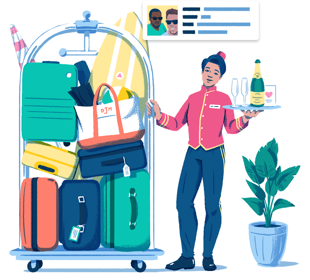 Sé el conserje de redes sociales para todos los viajeros con una plataforma centralizada que le permita a tu equipo brindar participación, detalles y apoyo a los clientes de forma proactiva, desde el momento en que realizan la reserva hasta que salen de viaje.