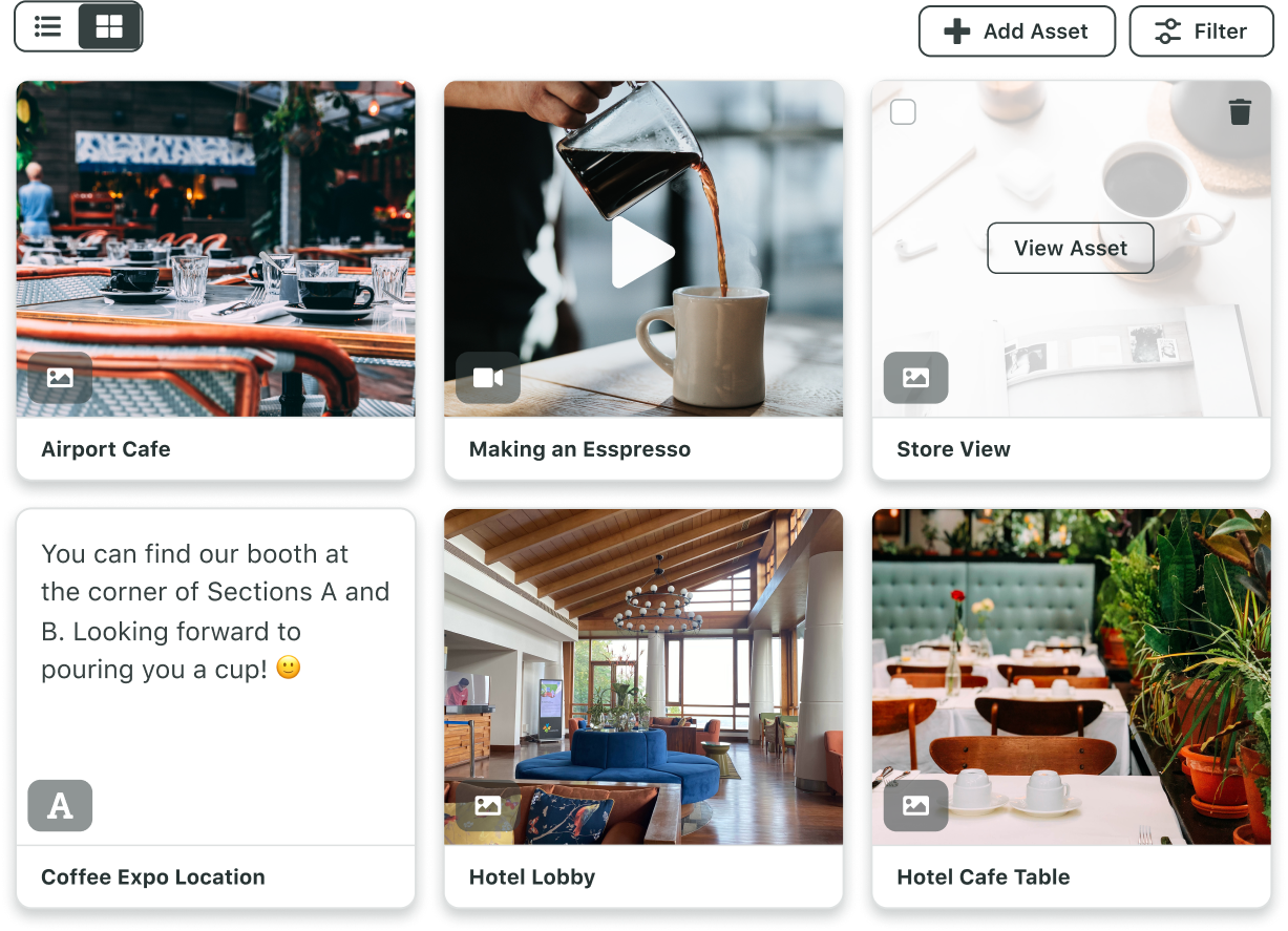 Publica contenido para varios equipos con facilidad utilizando fotos, videos y mensajes preaprobados obtenidos de una Biblioteca de recursos centralizada.