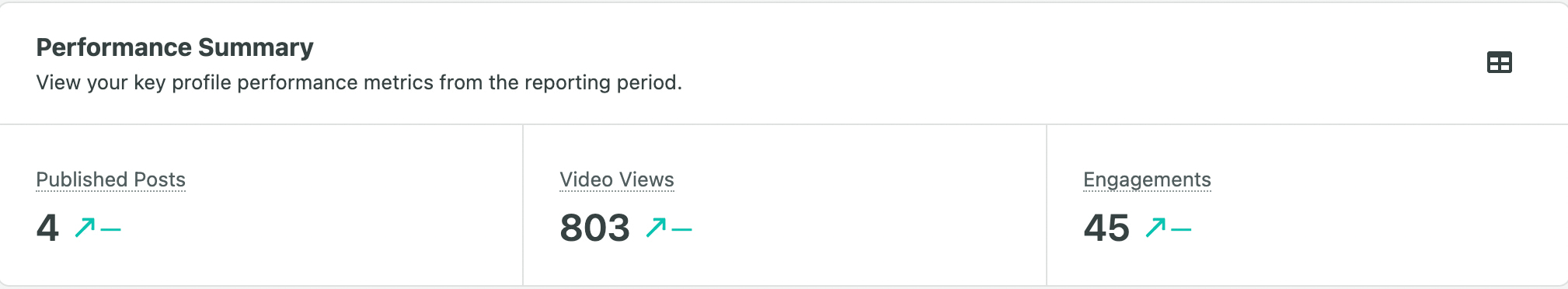 The Performance Summary displays an overview of your performance metrics.