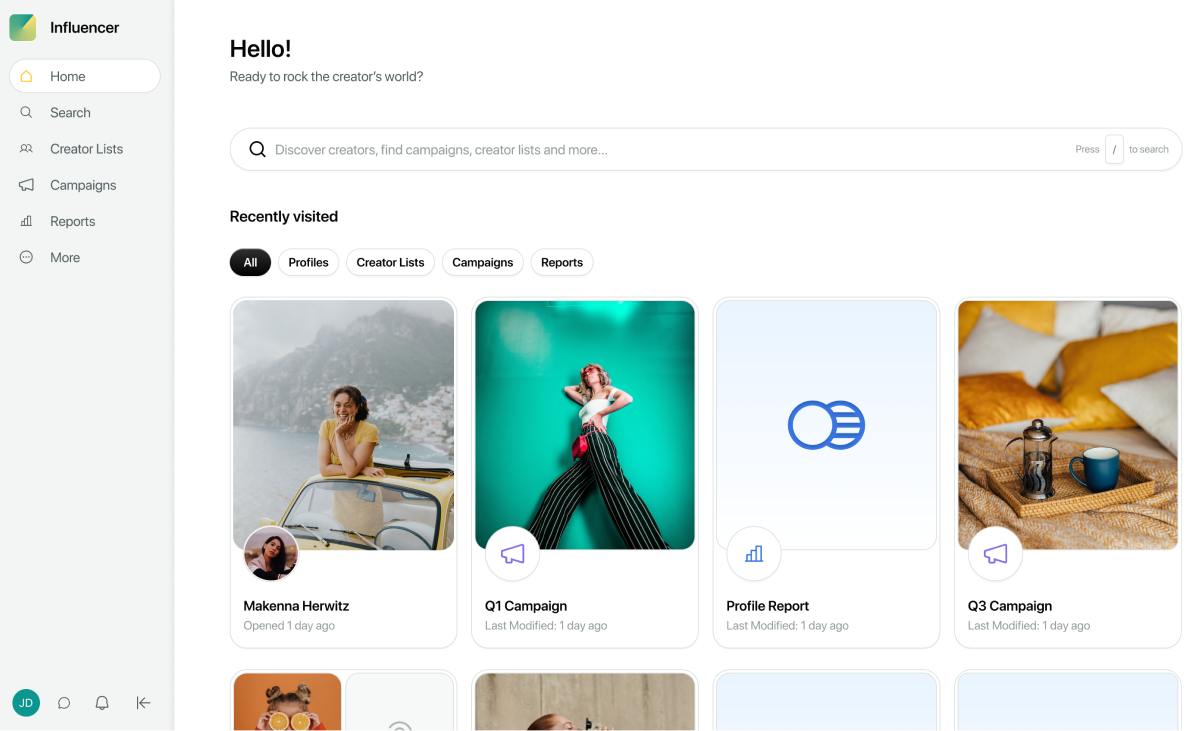Organice y compare influencers, vea campos personalizados y compare los objetivos de rendimiento de la campaña. Las sugerencias de creadores impulsadas por IA amplían sus esfuerzos encontrando creadores adicionales que cumplan con sus criterios. - Impulsa el contenido del creador